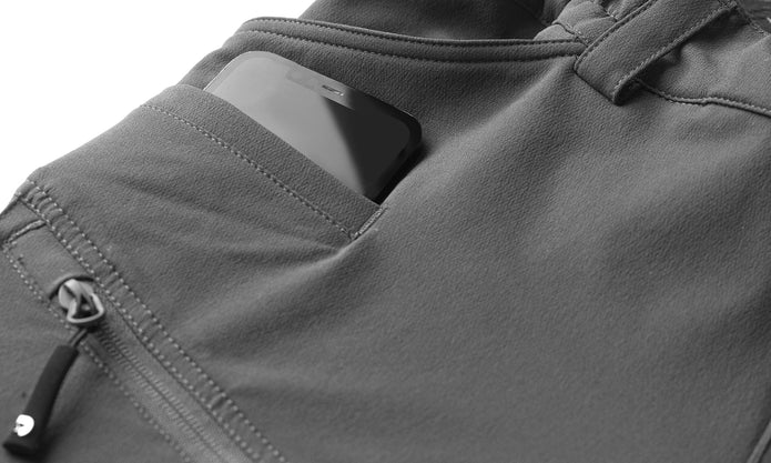6 praktiske lommer, herunder 2 sidelommer til hænderne, 1 praktisk mobillomme, 2 lårlommer med lynlås og 1 baglomme med lynlås til pung eller nøgler