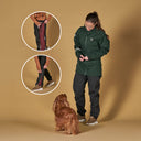 Die Pack&Dry Quick Zip Pants bestehen aus dem gleichen 100% wasserdichten Material wie die originalen DogCoach Shelljacken. Sie ist leicht, weich und atmungsaktiv – und lässt sich einfach über Deine normale Hose ziehen, ohne dass Du dafür Deine Schuhe ausziehen musst.